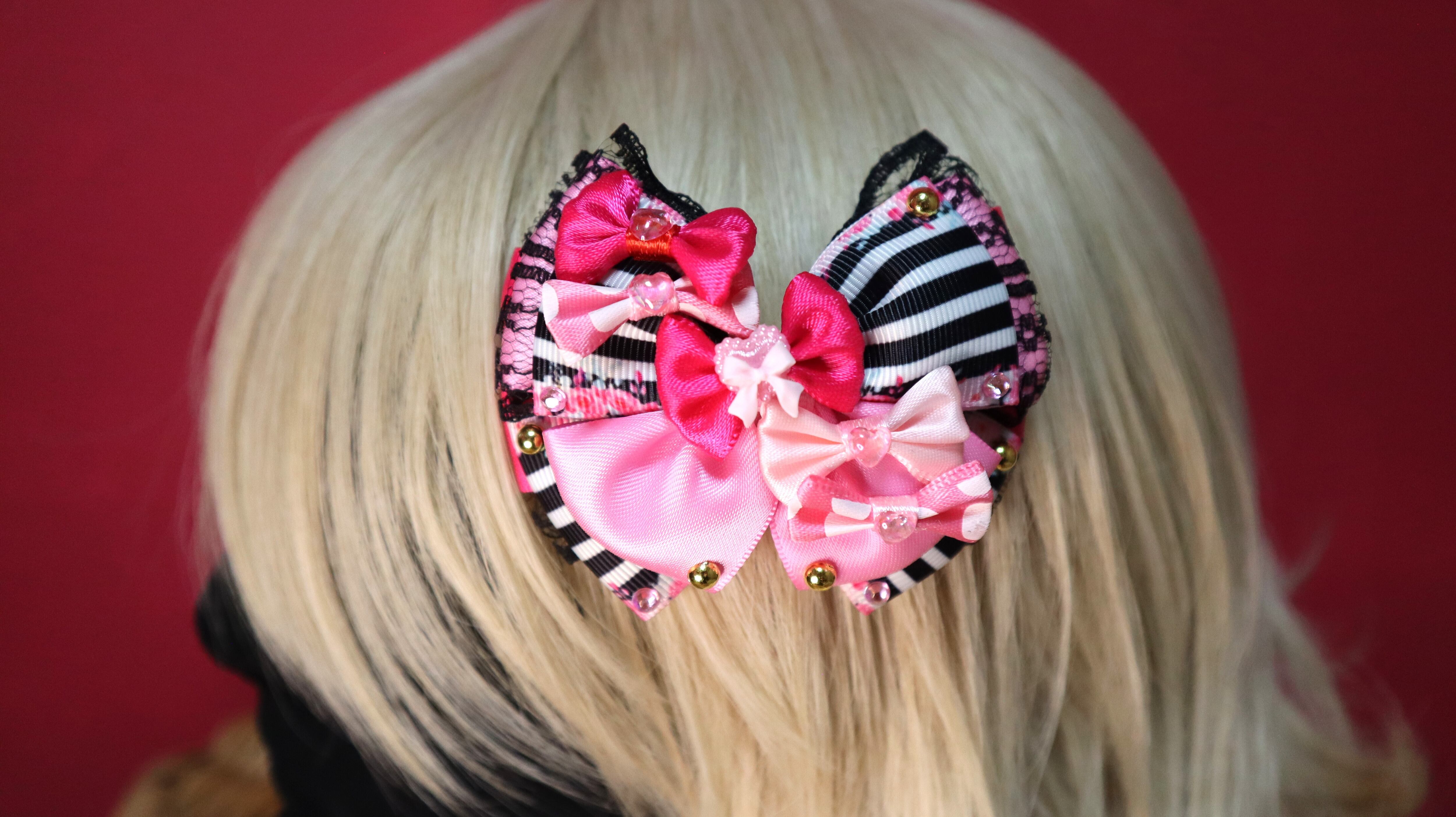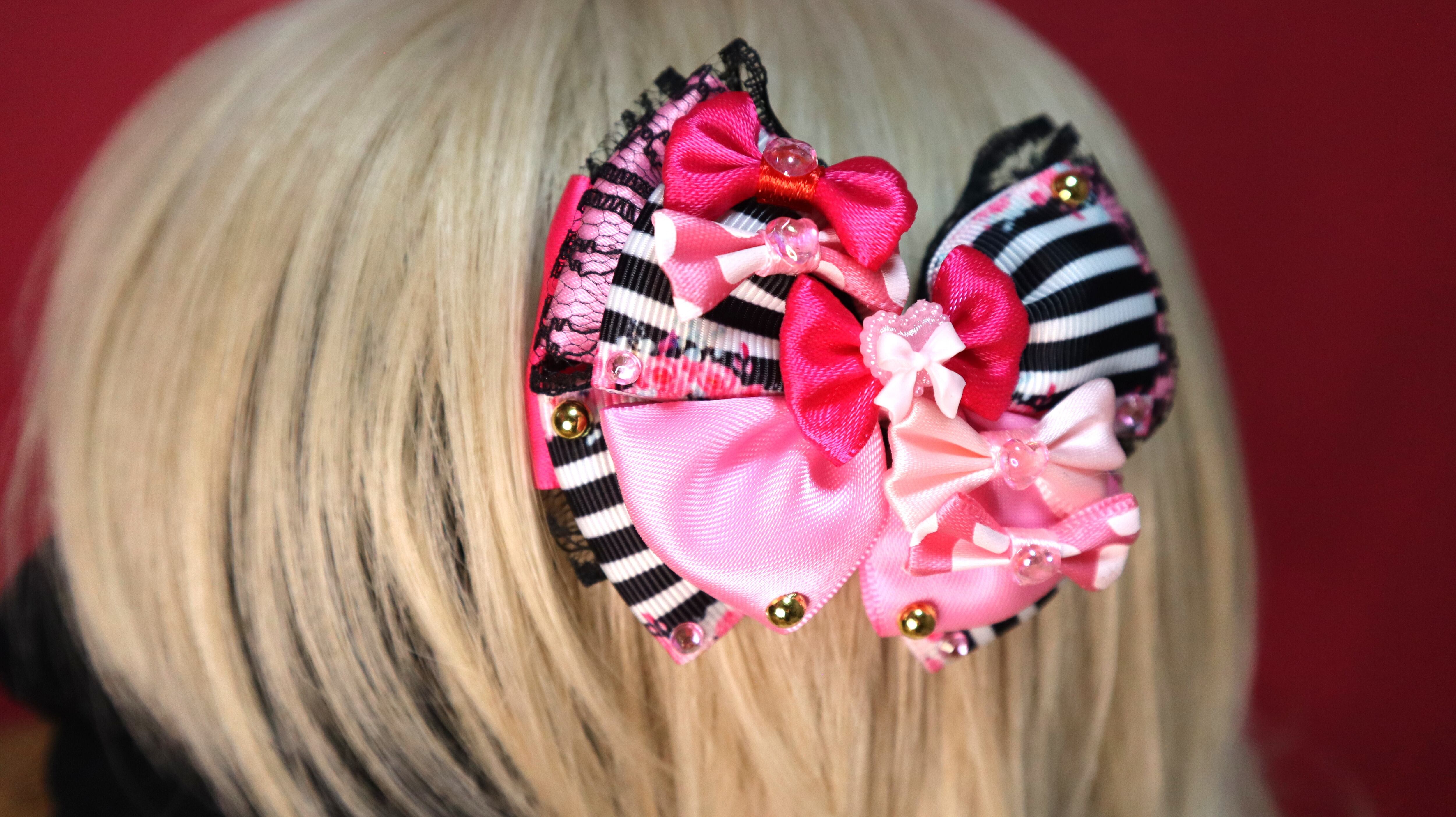 ピンク系/ボーダーリボン/リボンまみれリボンシリーズ/ヘアクリップ