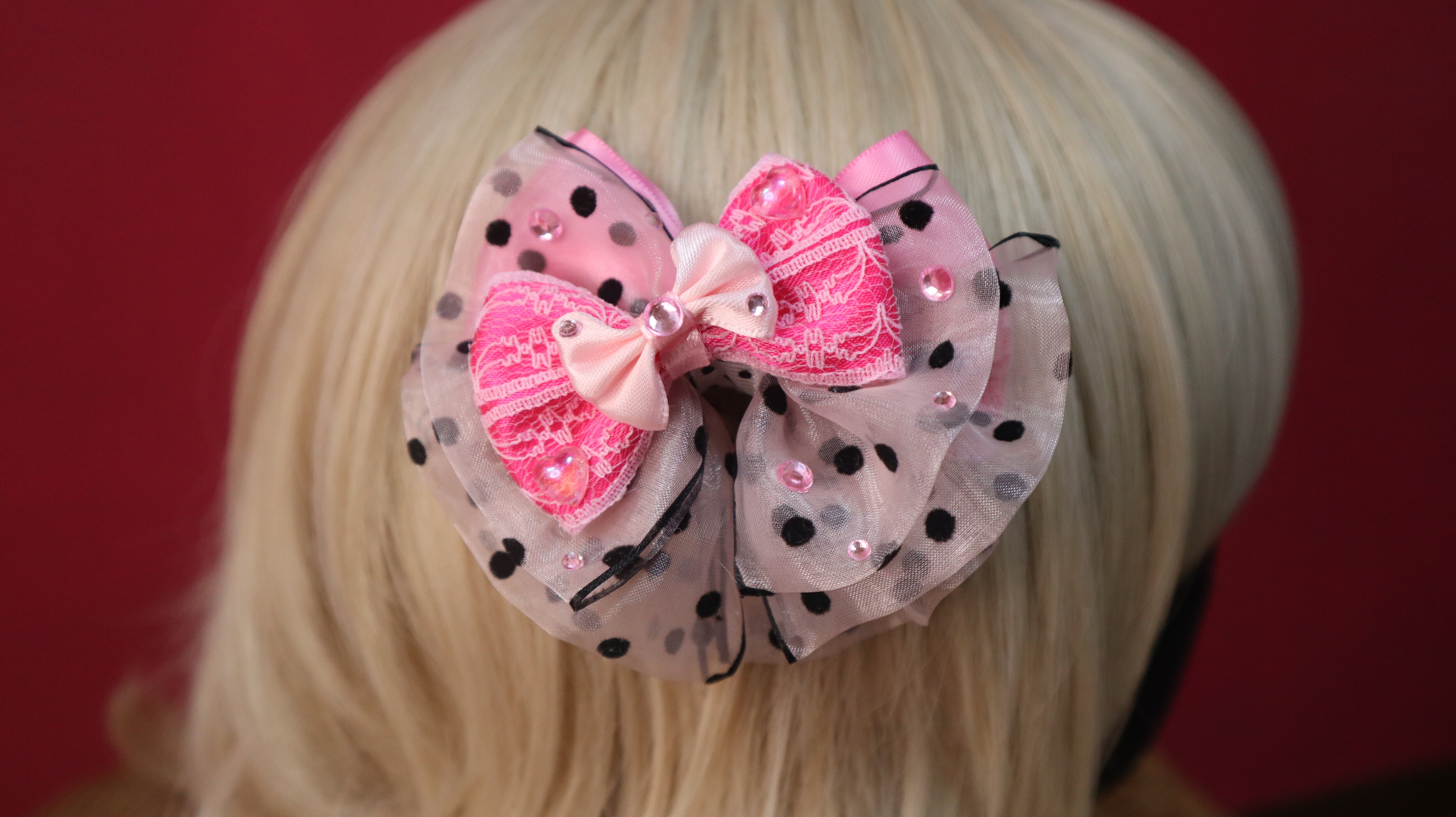ピンク系/ふわふわリボン/シフォン/ヘアクリップ
