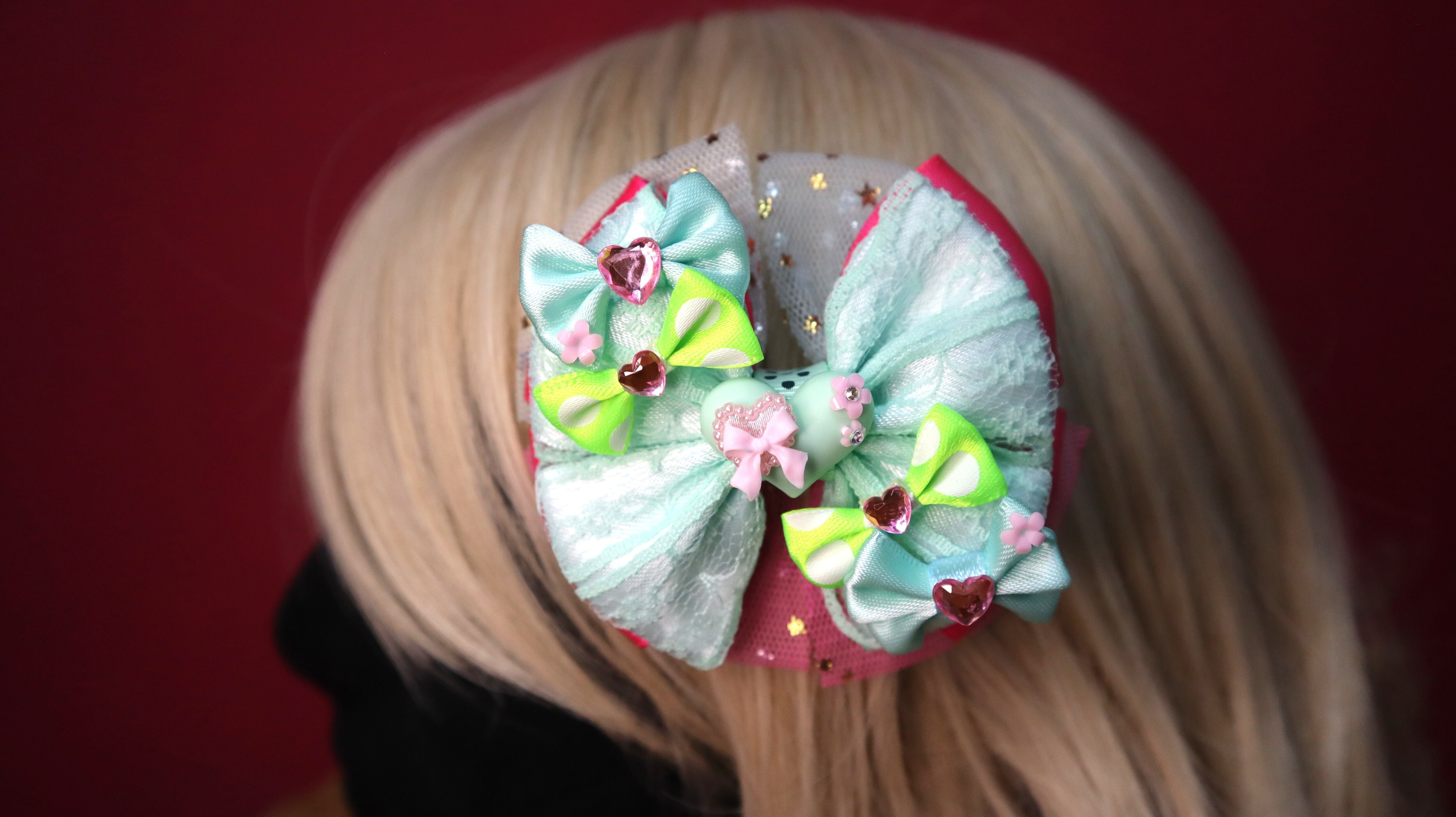 グリーン系/♡パーツ/お花パーツ/リボンまみれリボンシリーズ/ヘアクリップ