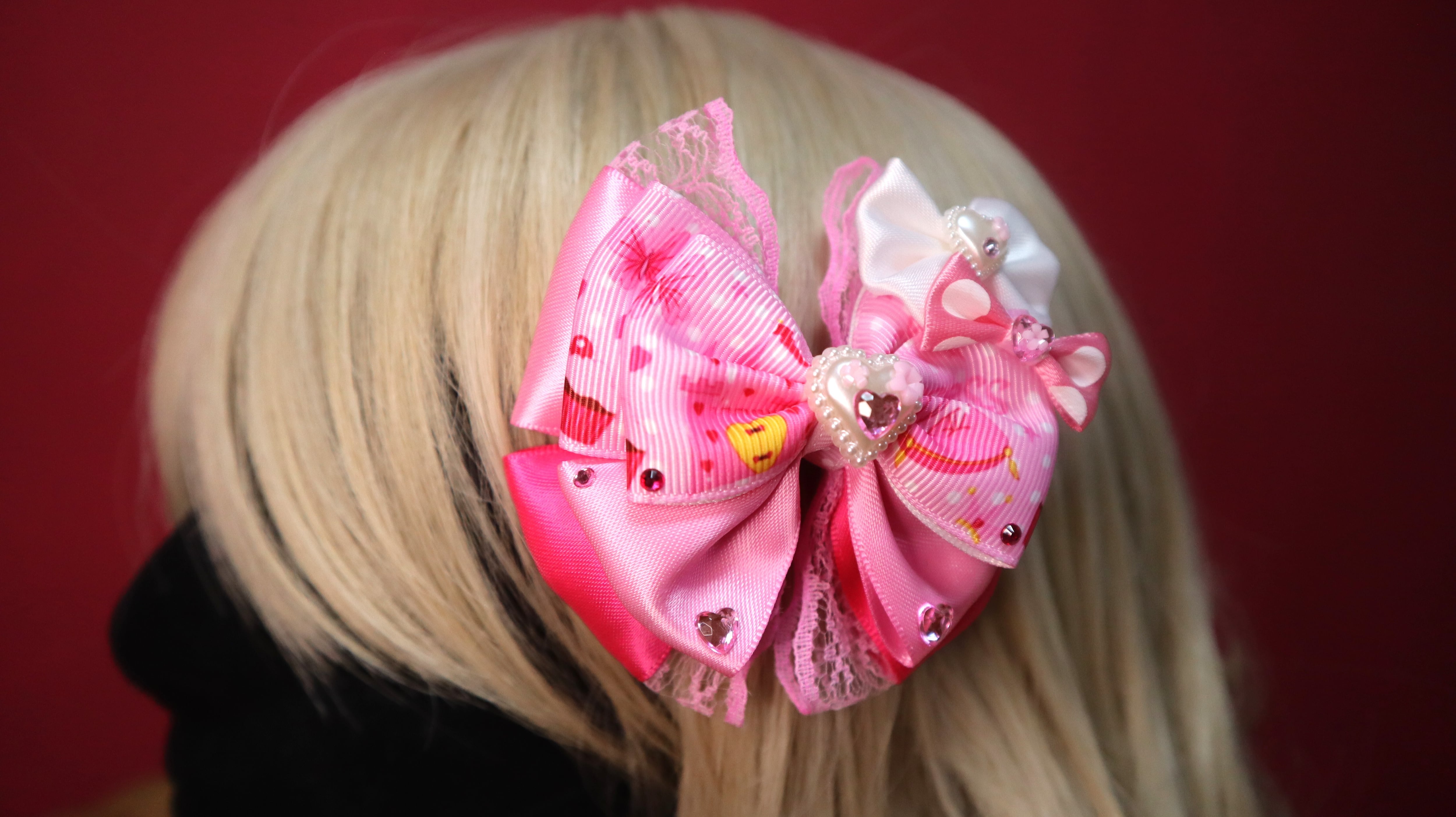 ピンク系/ホワイト♡パーツ/プリンセス柄リボン/ヘアクリップ
