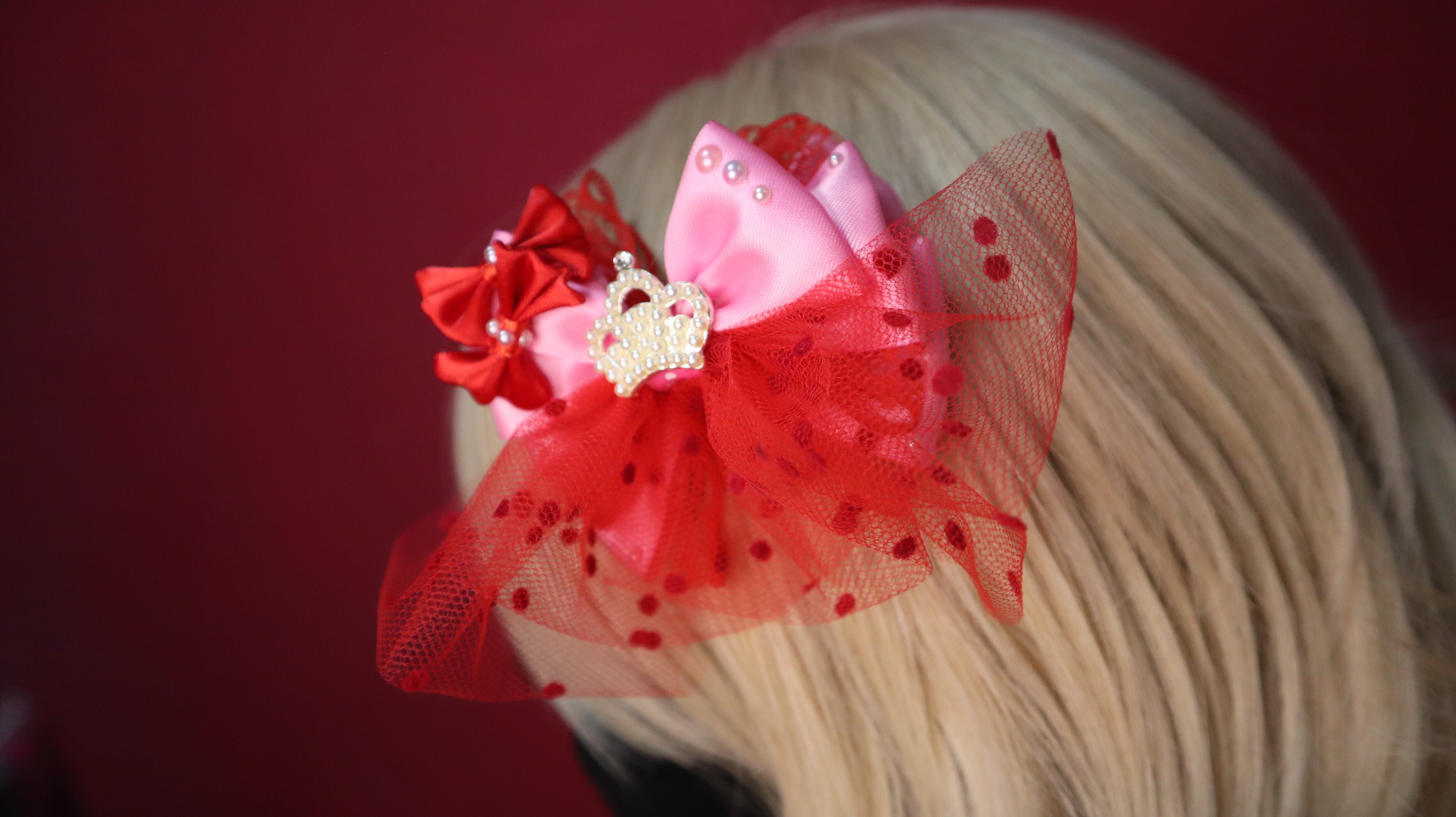 イベント系/ピンクリボン/クリスマス/クリスマスリボン/バレンタイン/レッドドットチュール/真ん中クラウン/オソロリボン/ヘアクリップ
