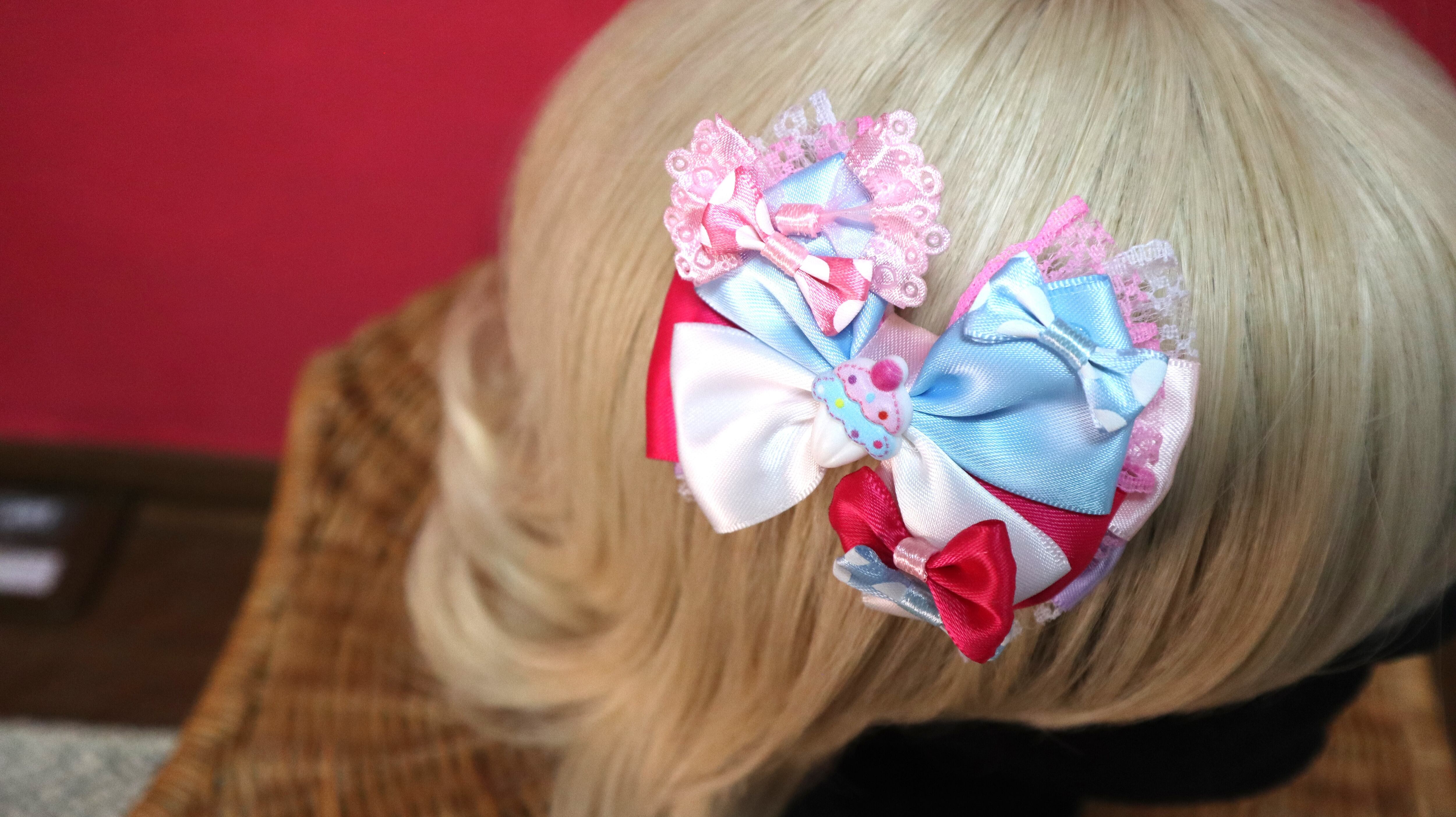 ブルー系/ブルーホワイトリボン/スイーツシリーズ/アイスクリーム/ヘアクリップ