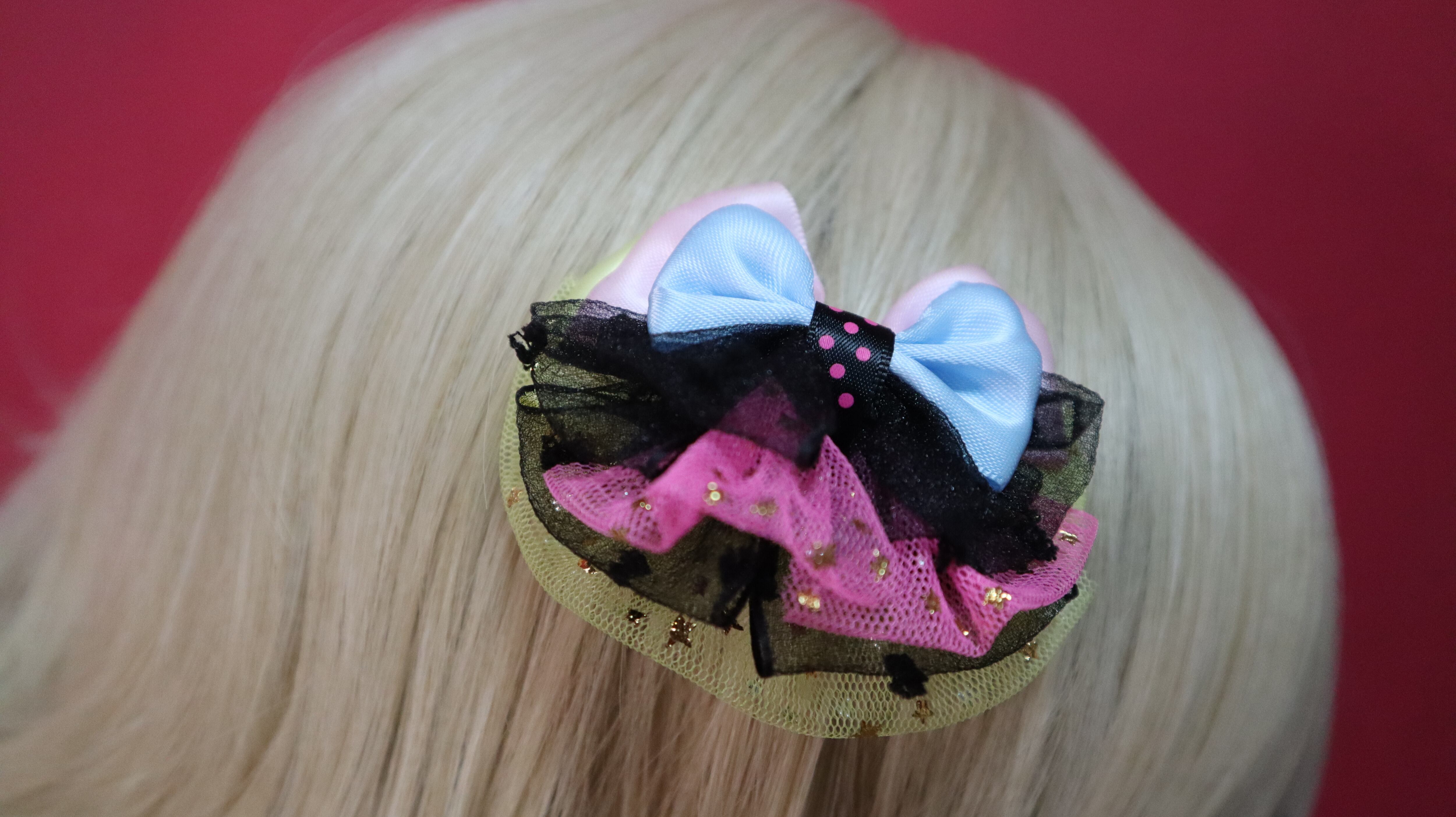 ブルー系/チュールたっぷりリボン/ヘアクリップ