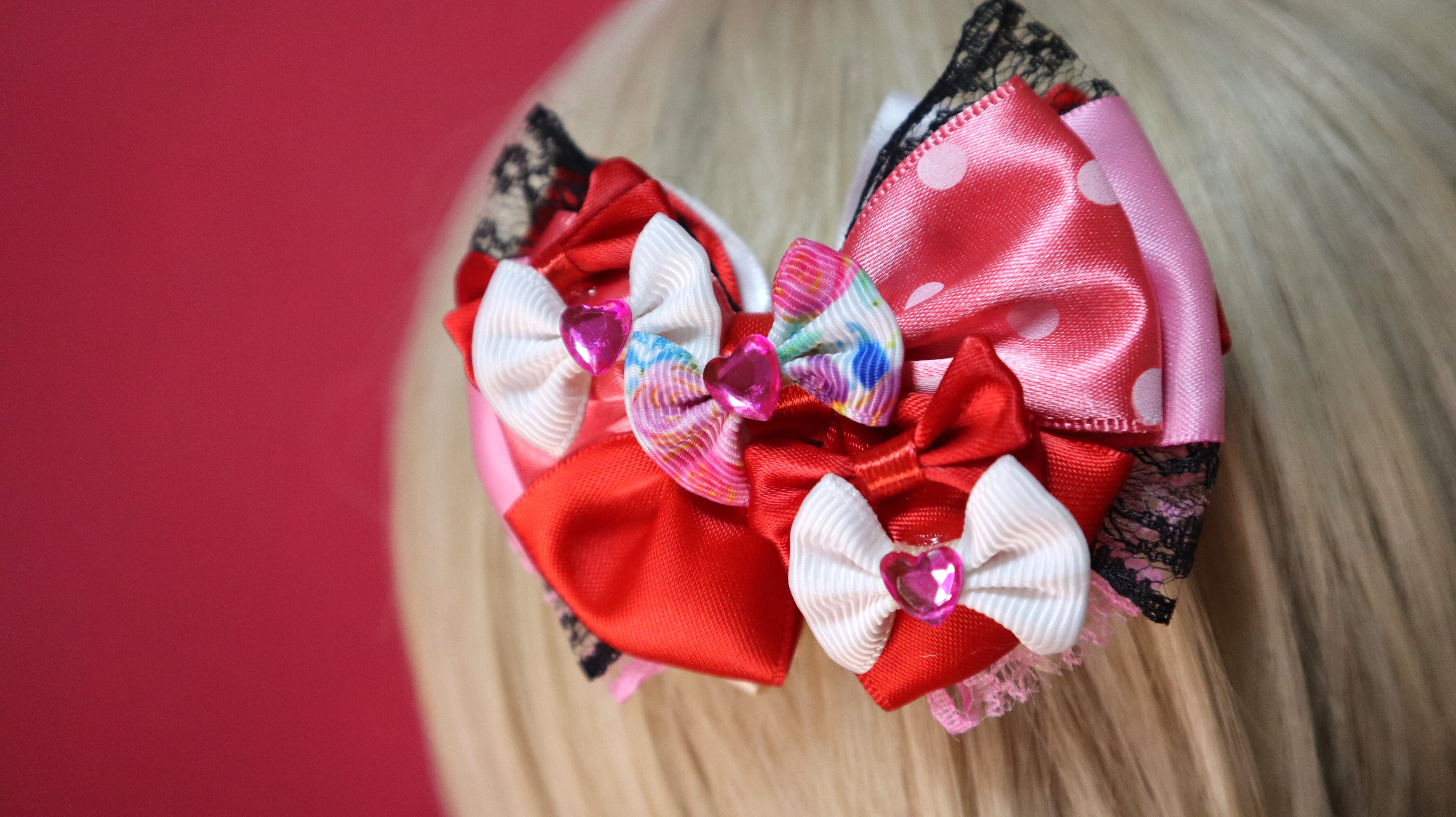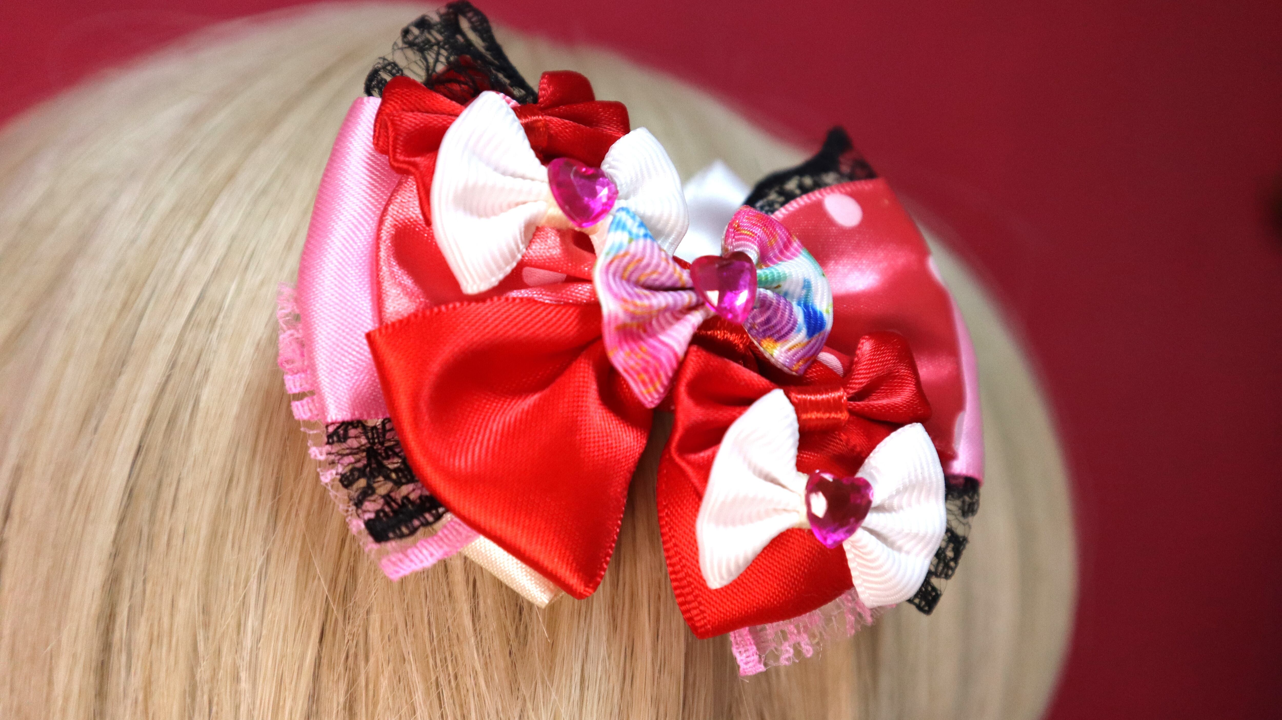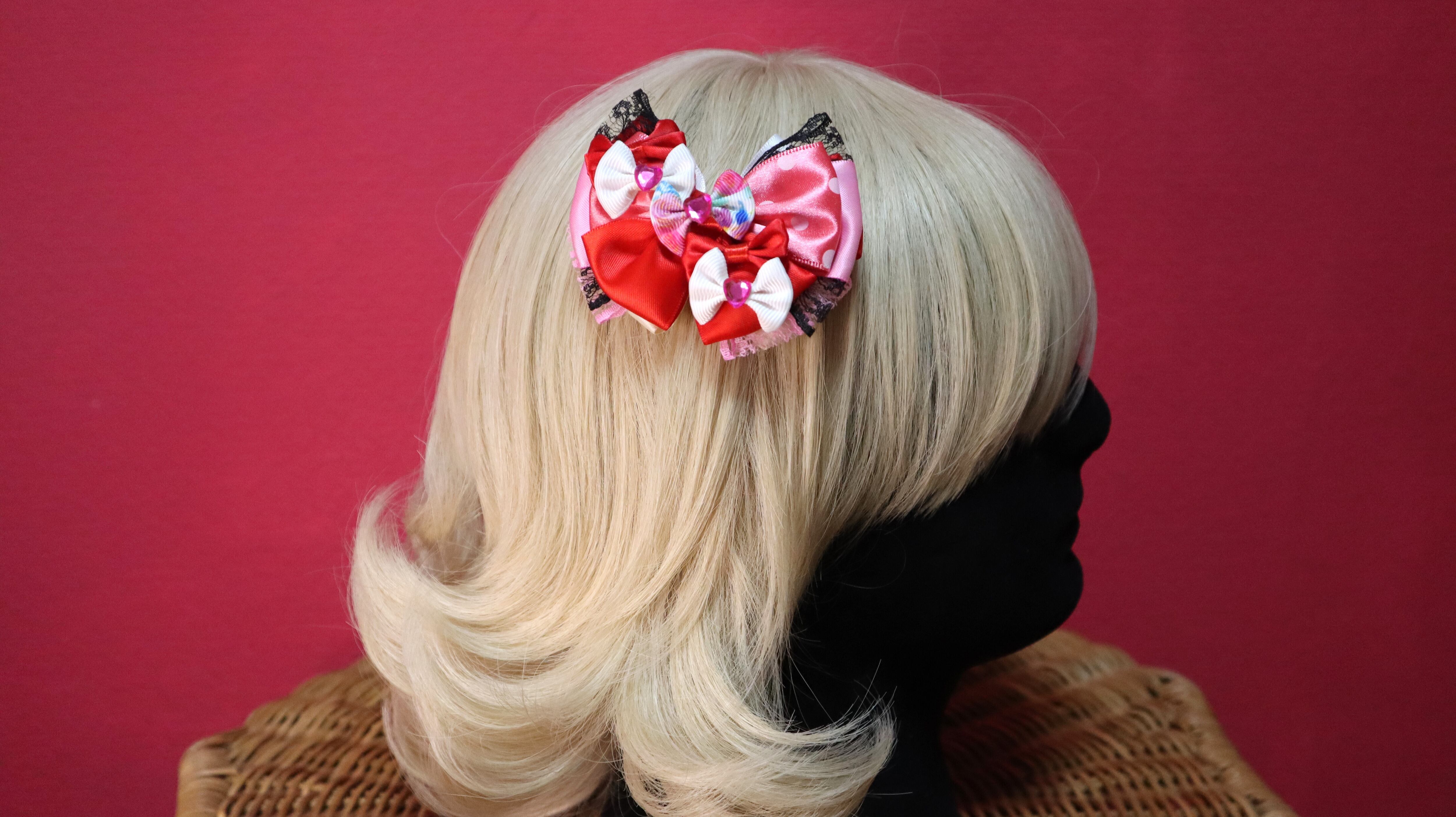 レッド系/コスプレリボン/プリンセスドレス/クリスマス/バレンタイン/ヘアクリップ