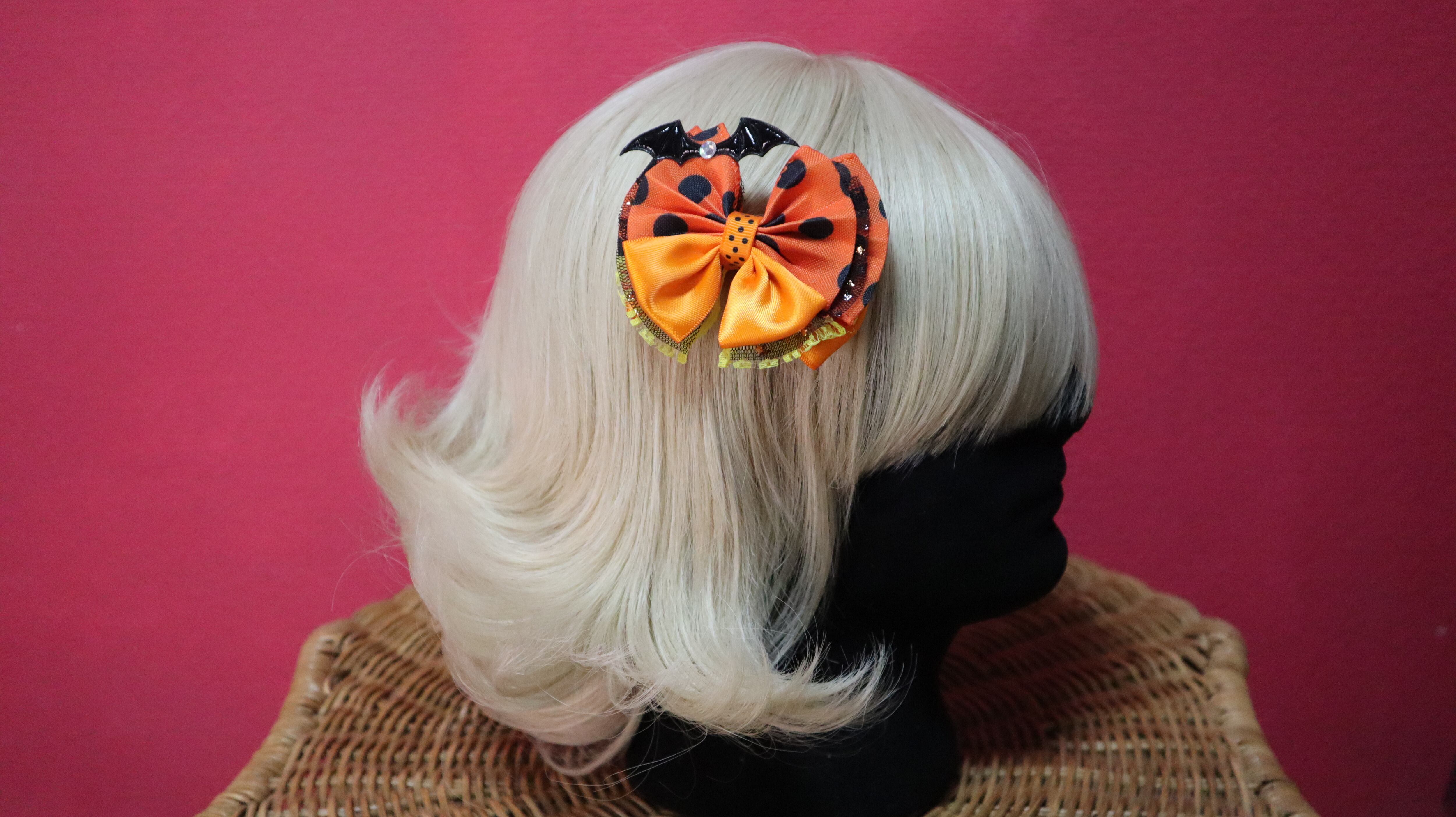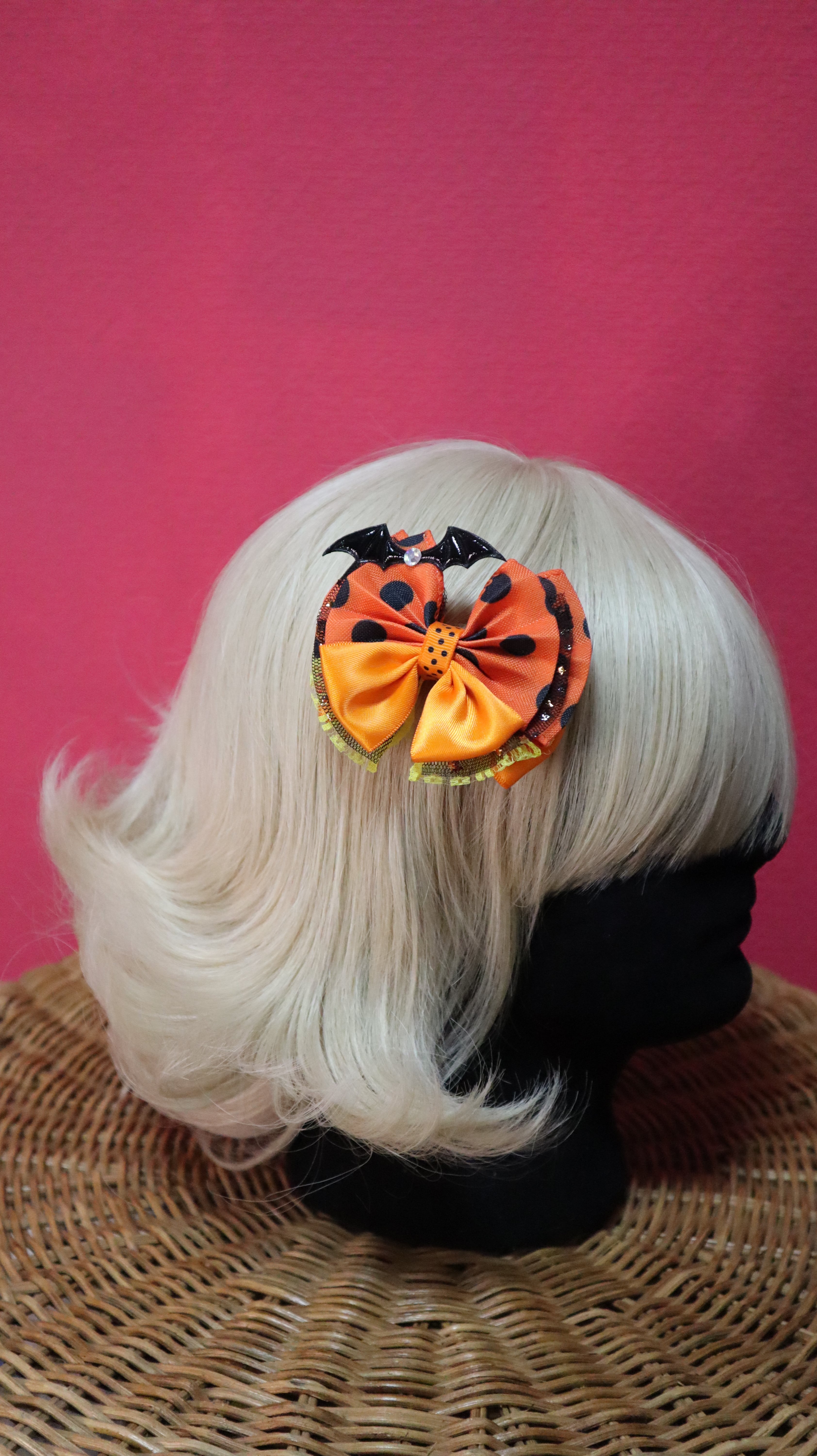 イベント系/ハロウィン/コウモリつきドットリボン/ヘアクリップ