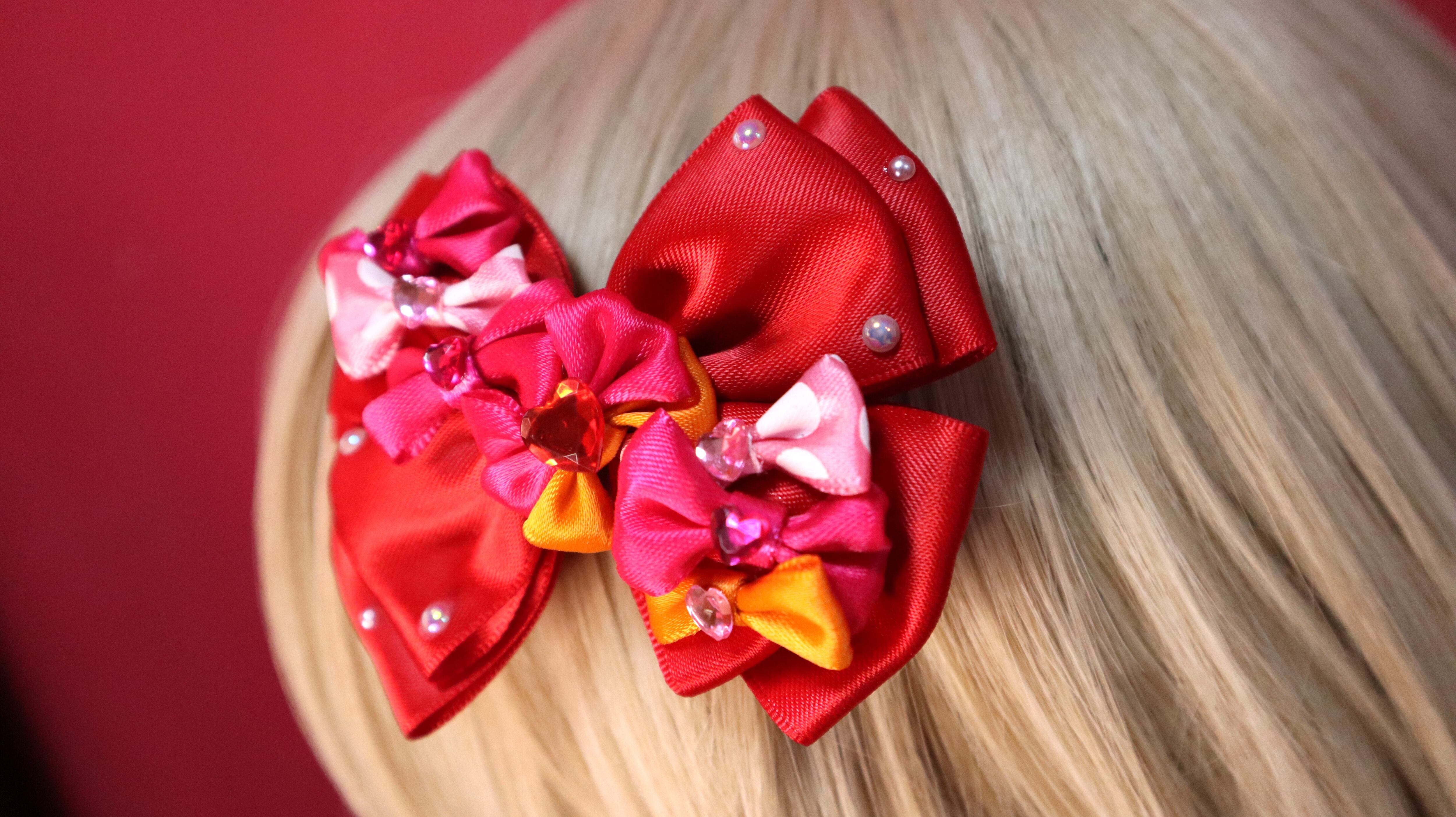 レッド系/クリスマス/バレンタインに/イベントに/リボンまみれリボンシリーズ/ヘアクリップ