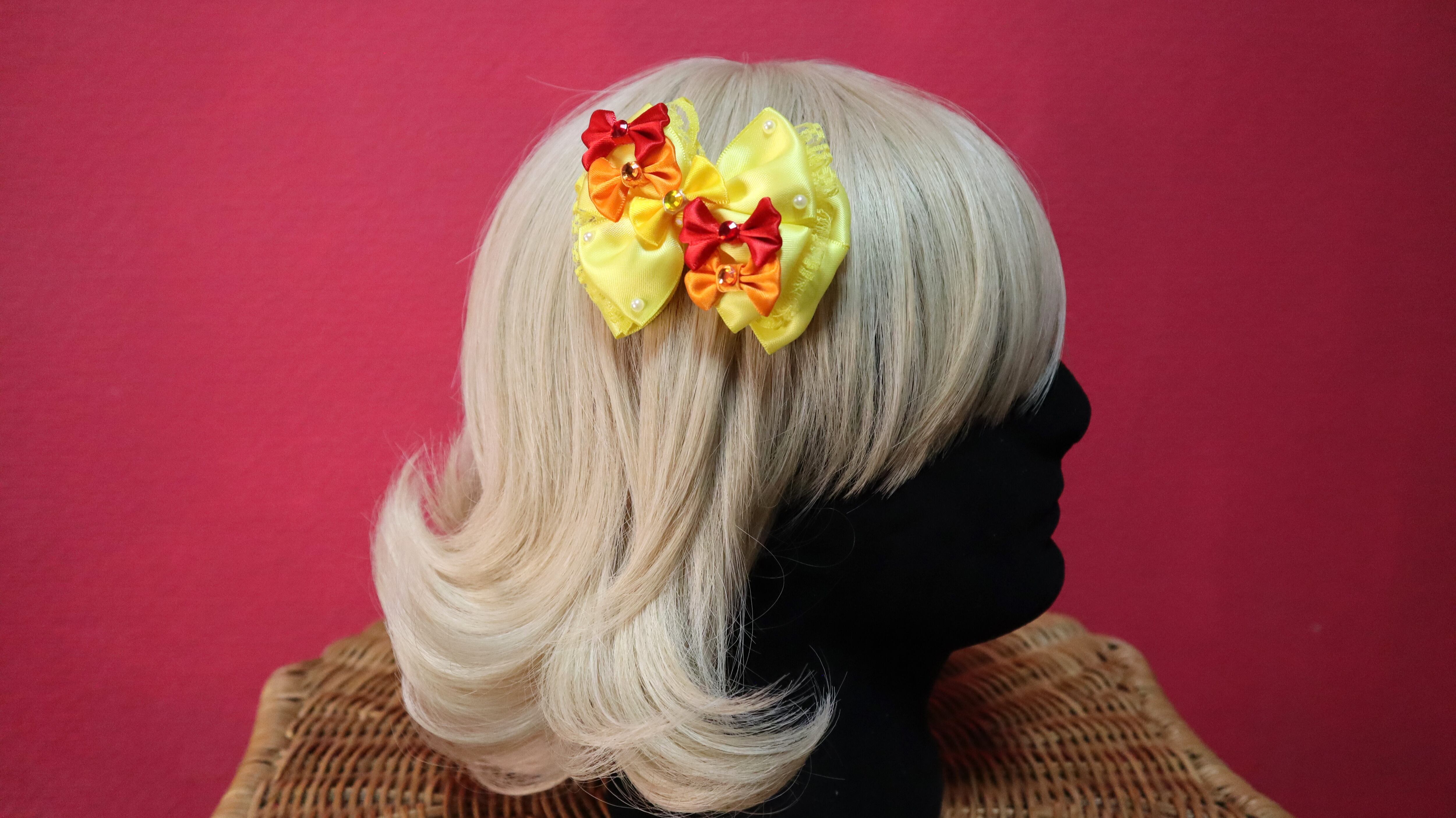 イエロー系/コスプレリボン/プリンセスドレス/リボンまみれリボンシリーズ/ヘアクリップ