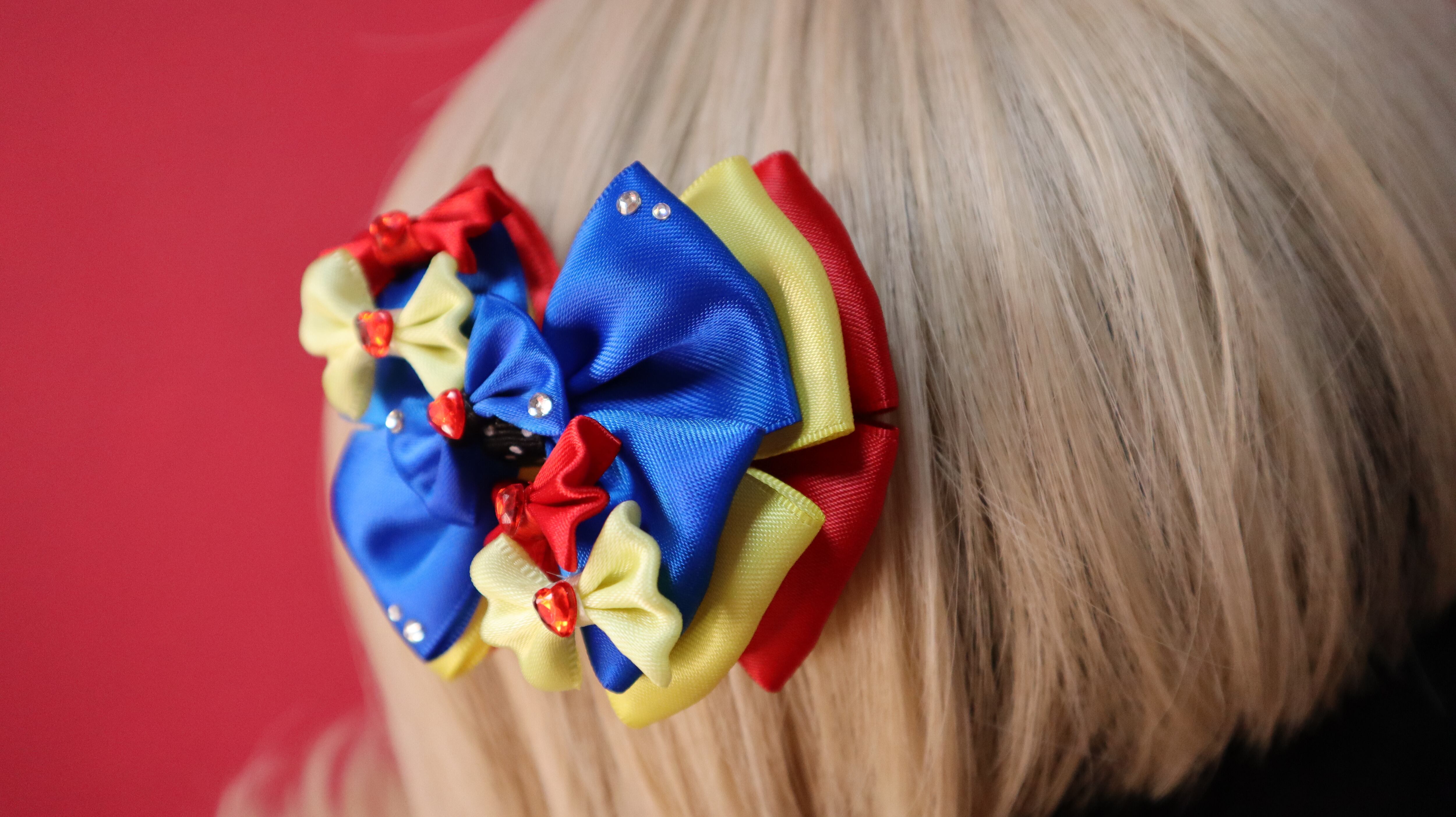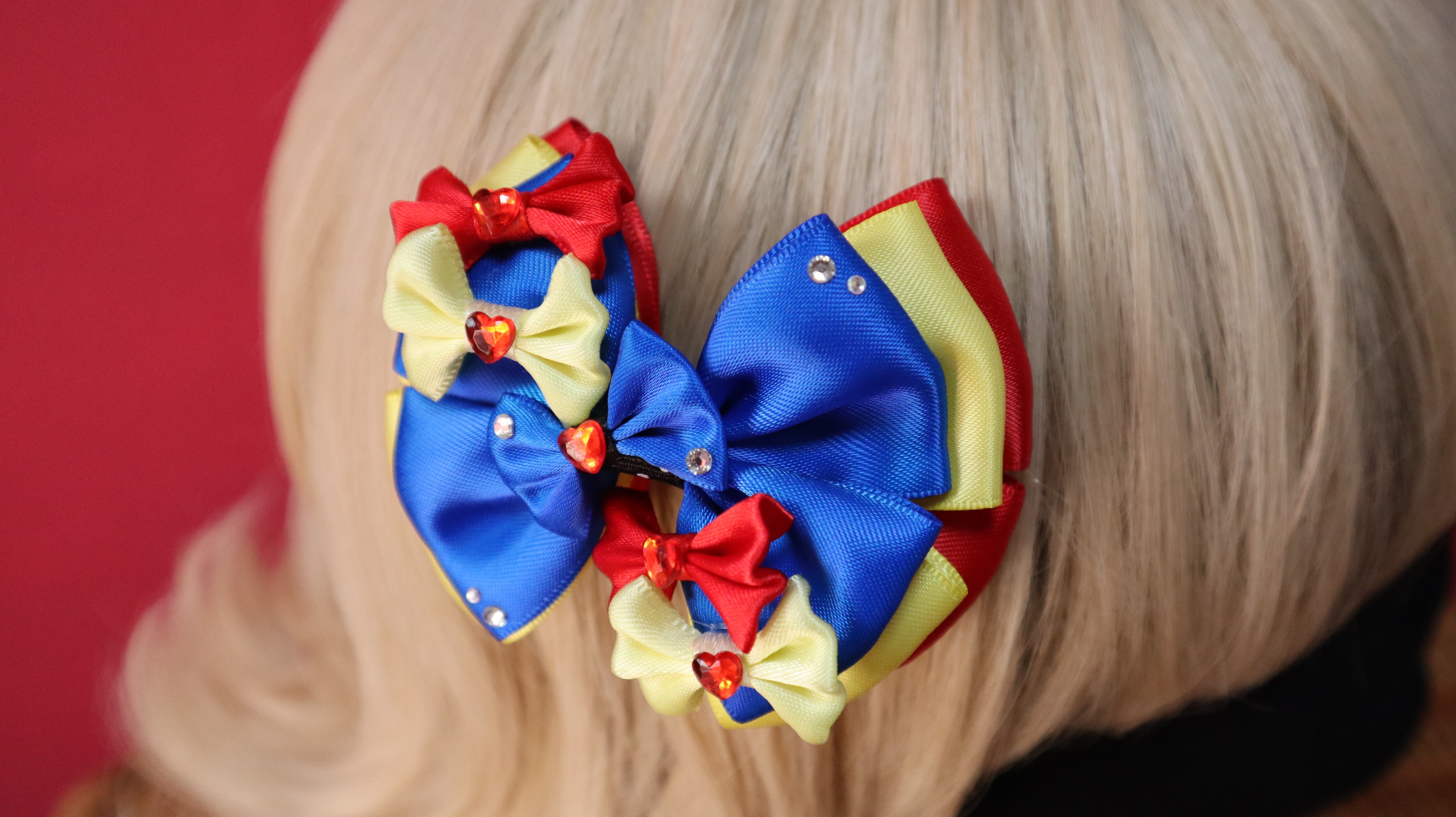 メインリボンの3色とミニリボンの3色で、すごく華やかで目立つこと間違いなしです。